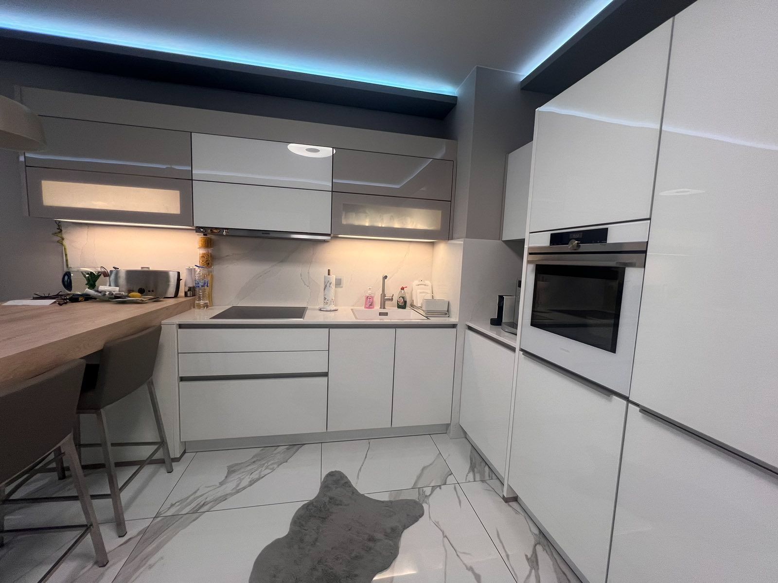 'Емили Риъл Естейтс' Ви предлага, прекрасен тристаен апартамент в 'Белия квартал', с РЗП - 114 кв.м., и ЗП -96 кв.м. Намира се в непосредствена близост до ' Метростанция Витоша ' и 'Мол Парадайс'. Разпределение: Хол с кухненски бокс - 32 кв.м., с излаз към тераса и великолепна гледка към Витоша, две спални, две бани с WC, едната от които е към родителската спалня, като и двете спални имат достъп до тераса. Жилището е с висок клас немски мебели, санитария и ел. уреди, естествен паркет в спалните помещения! Климатици!!! Кухнята е с естествен мраморен камък! Сградата е газифицирана, и има вътрешен самостоятелен котел. Към апартамента има възможност за закупуване на подземно паркомясто! За оглед на този имот или за други атрактивни предложения от нашата агенция се свържете с нас на посочения телефон. БЕЗПЛАТНО ПРОФЕСИОНАЛНО СЪДЕЙСТВИЕ ЗА ЖИЛИЩЕН КРЕДИТ!!! ПРЕФЕРЕНЦИАЛНИ УСЛОВИЯ!!! НАЙ-ИЗГОДНИТЕ КЪМ МОМЕНТА!
