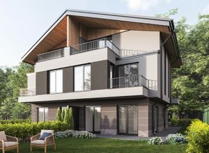 Емили Риъл Естейтс Ви предлага, елегантен дом в много тиха и зелена среда. Продава се едната от две самостоятелни къщи (всяка с отделна конструкция, покрив и вход, като всеки собственик получава реална част от двора). Параметри на имота: РЗП- 223 кв. м, Застроена площ: 70 кв. м (реално обособена половина), Изложение : Север- ЮГ (север - вход и паркоместа, юг- веранда и градина). Разрочено плащане : Гъвкава схема на плащане с 30% аванс при подписвне на предварителен договор.